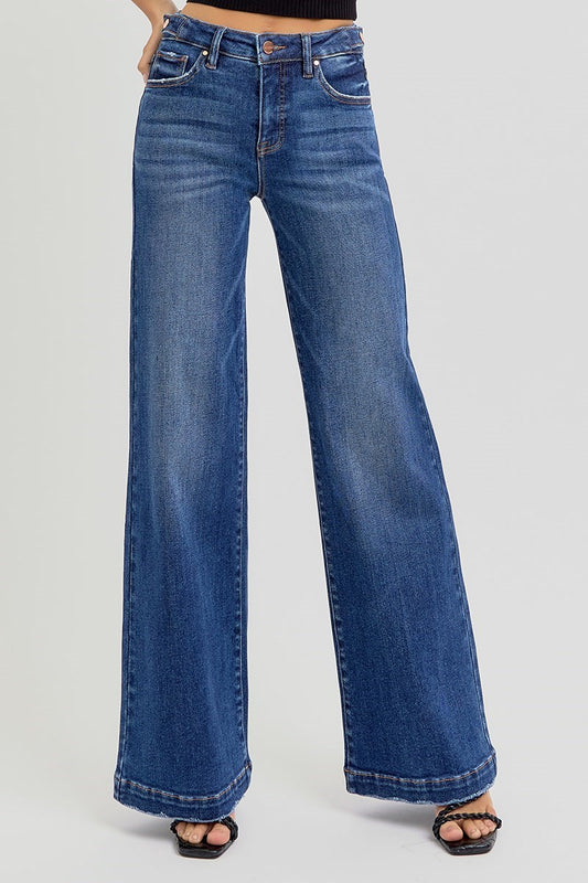 Asha Seam Mid Rise Wide Leg Jean- With Tummy Control