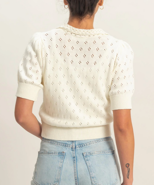 Simone Pointelle Collar Knit Top