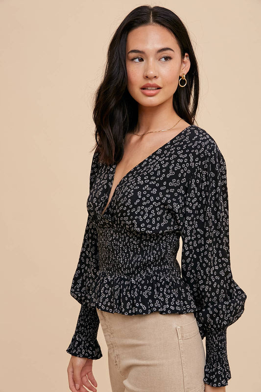 Rayla Contrast Detail Bell Sleeves V-neck Comfy Top