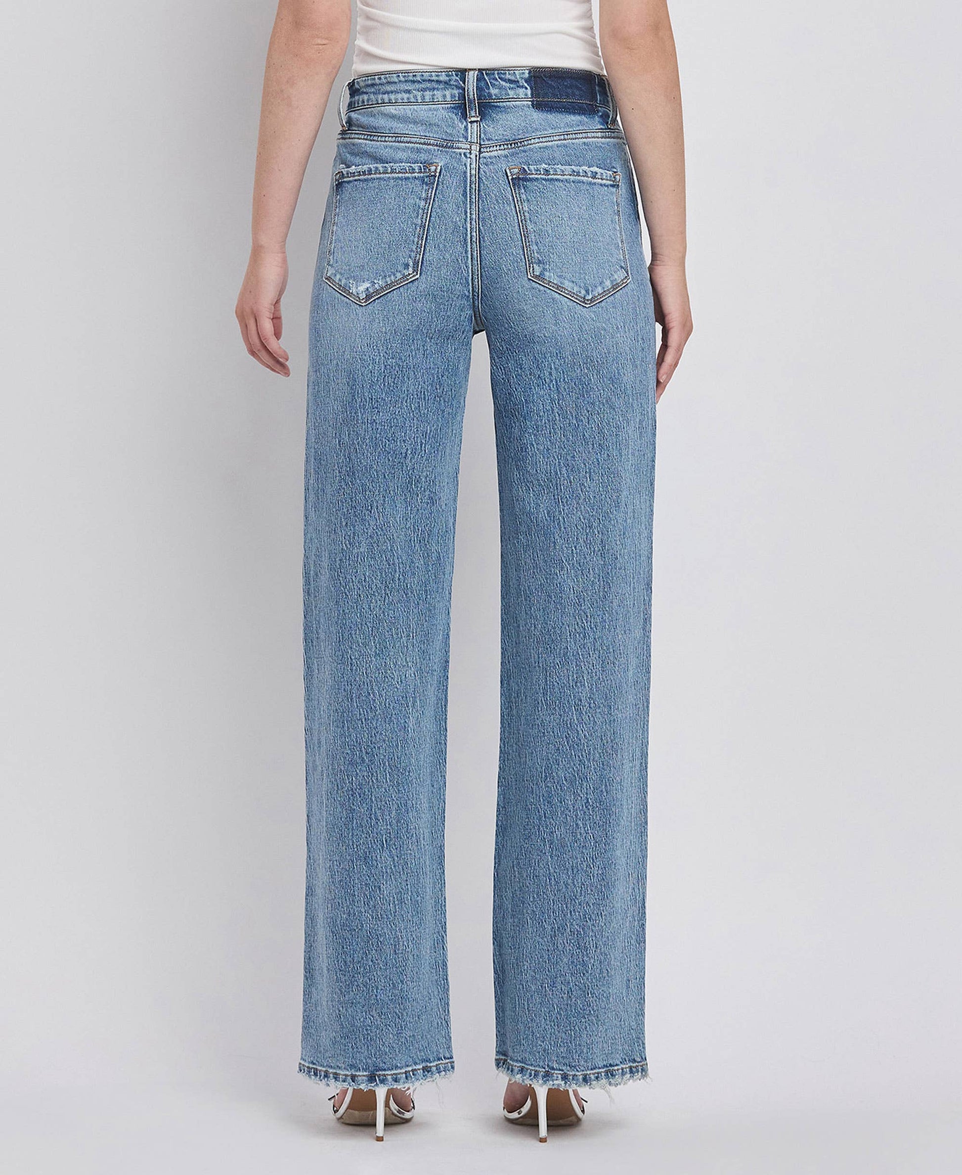 Step back into the 90s with these super high rise wide jeans that blend retro flair with modern comfort. Crafted from stretch denim, they move with you while showing off a flattering high waist. Lightly distressed details lend just the right amount of edge, and the finished hem keeps them looking sharp. Full length and wide-legged, these jeans bring bold, breezy style to any casual day. Perfect for channeling your inner vintage vibe with a playful twist!