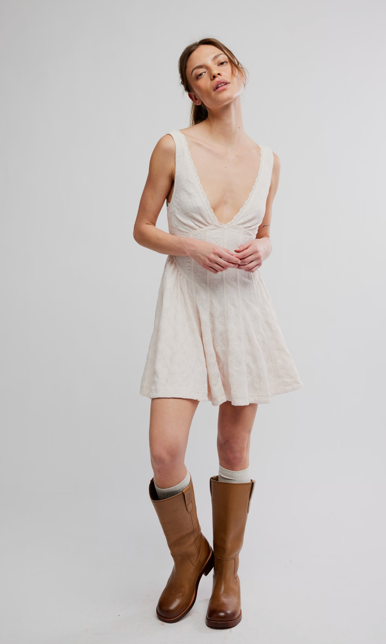 Effortlessly chic and undeniably fun, the Cant Help It Mini brings that carefree Free People vibe to your wardrobe. This playful mini dress features a fitted bodice that hugs in all the right places, paired with an elastic back for ultimate comfort and movement. The textured fabric adds visual interest and dimension, giving you that coveted boho-inspired look with an edge. Perfect for weekend adventures, casual outings, or whenever you want to feel confident and fabulous without trying too hard.