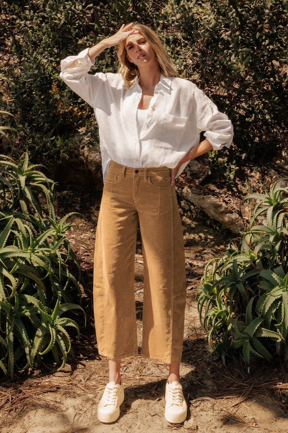 Step into playful comfort with the Delany Corduroy Barrel jeans. Crafted from soft stretch denim, these high-rise jeans hug your waist just right while the seam detail adds a fun twist. Finished with a crisp hem and cropped length, they're perfect for showing off your favorite kicks or ankle boots. Embrace cozy corduroy in a bold silhouette that keeps your style effortlessly cool.