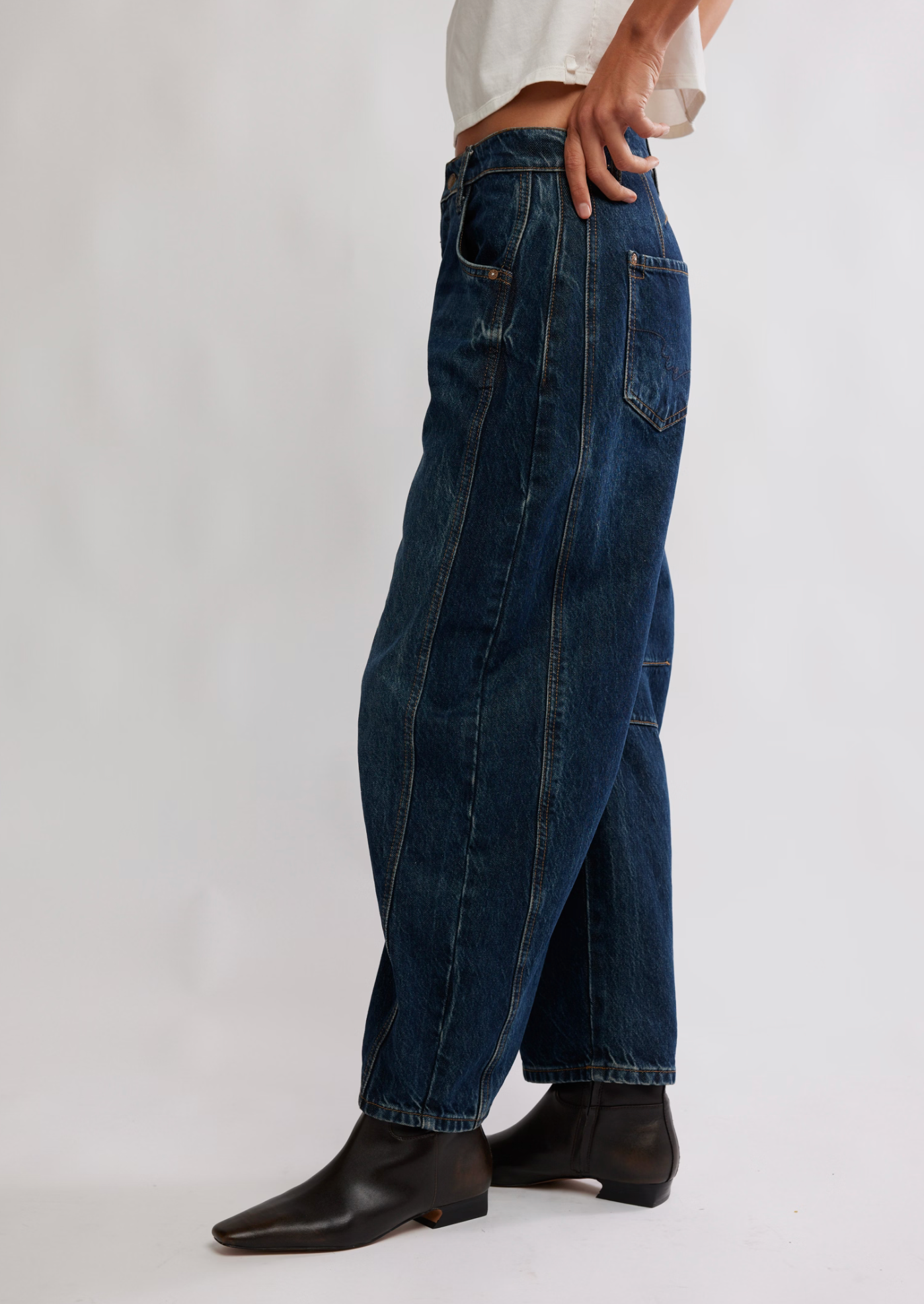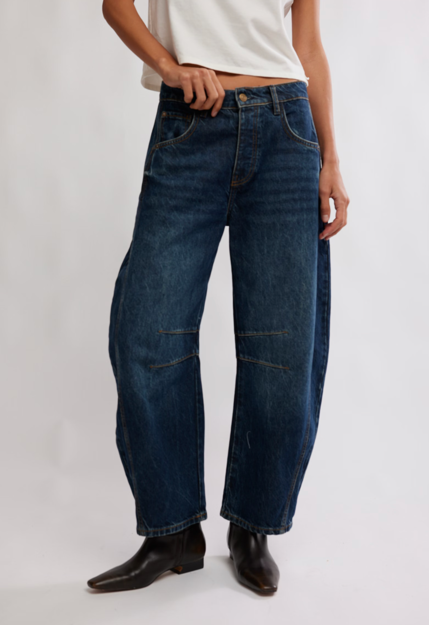 Embrace effortless style with these mid-rise barrel jeans from Free People. Featuring a relaxed, straight-leg silhouette that flatters every frame, these jeans offer the perfect balance of comfort and contemporary edge. The classic denim construction pairs seamlessly with everything from crop tops to oversized sweaters. A versatile wardrobe essential that transitions from casual weekends to laid-back nights out. Good luck finding a more perfect pair.