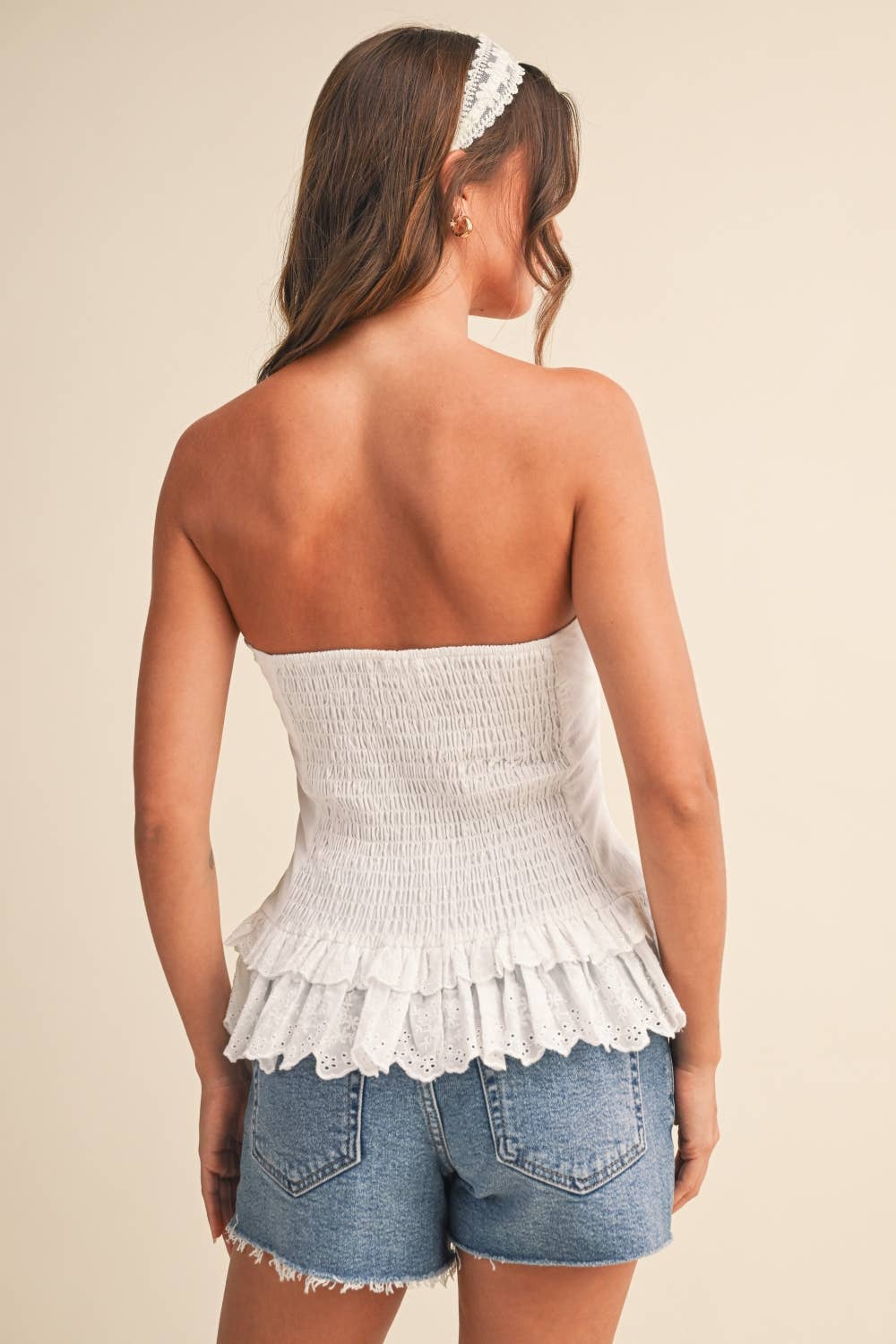 Effortlessly chic and oh-so-versatile, the Penny Poplin Top is your new go-to piece. Crafted from a breathable poplin blend with a hint of stretch, this tube top features a charming front button closure and delicate lace detailing along the hem for that perfect boho touch. The relaxed fit makes it ideal for layering or wearing solo—dress it up with high-waisted bottoms or keep it casual with your favorite denim. A wardrobe essential that works as hard as you do.