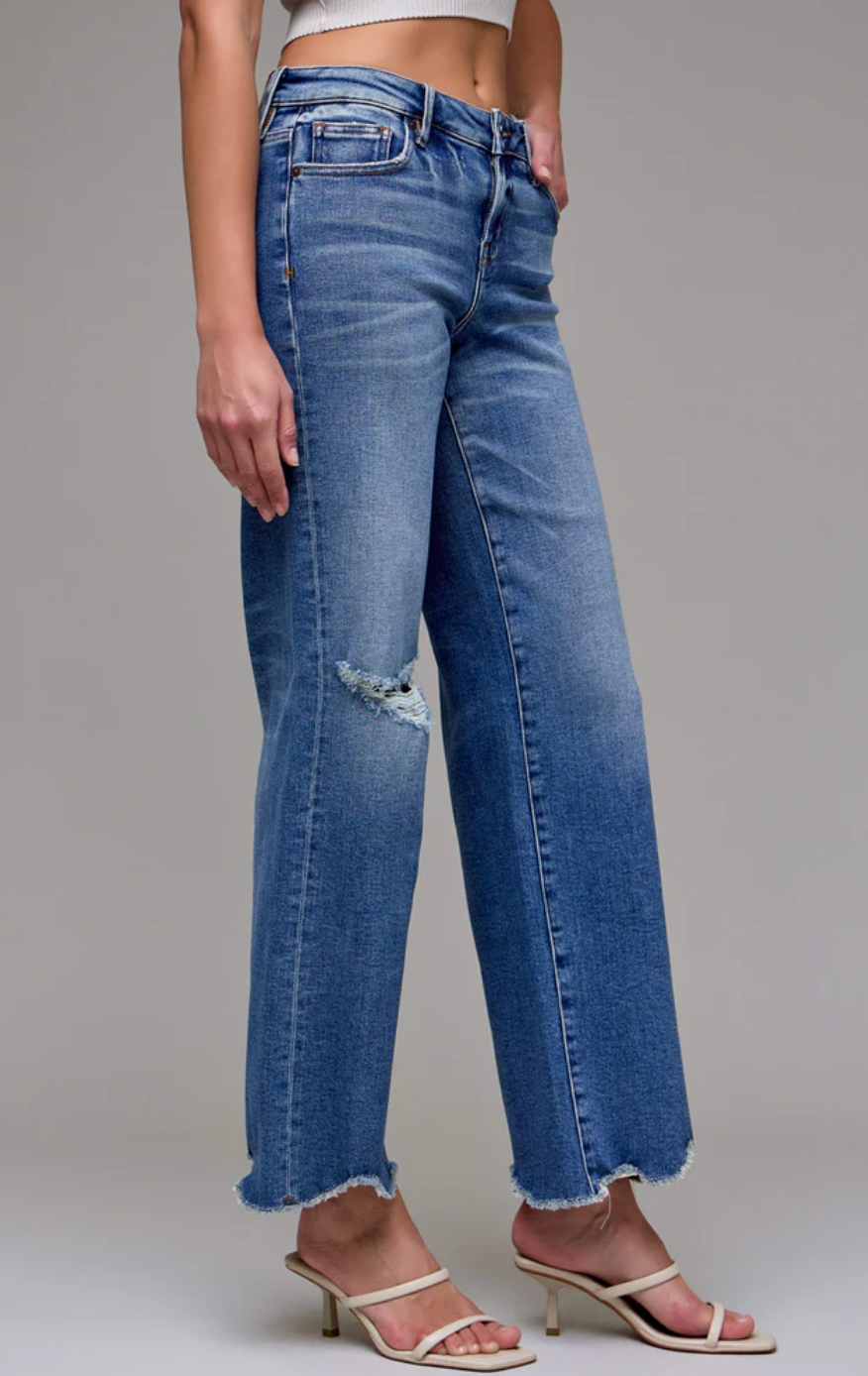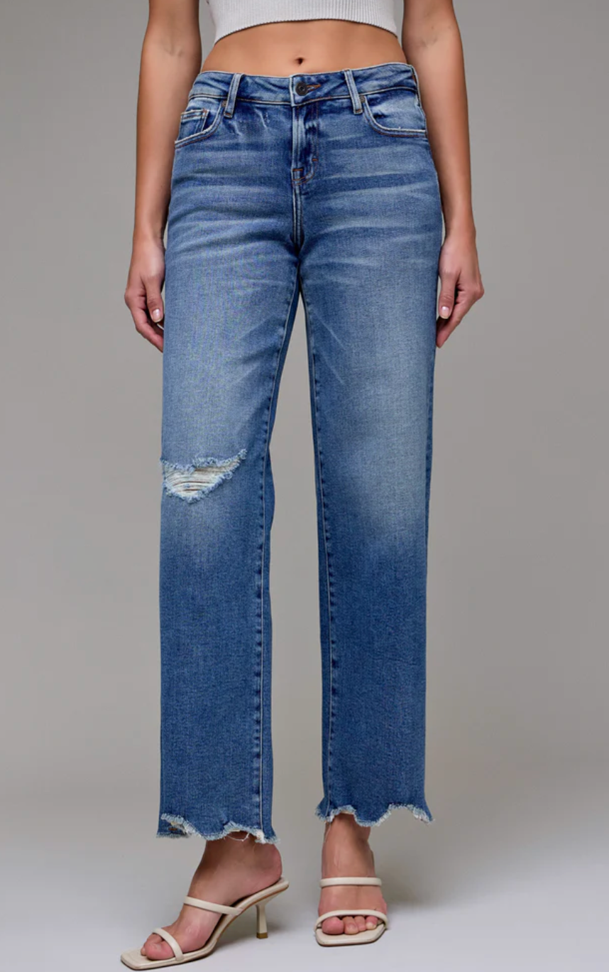 Step into comfy cool with the Logan Low Rise Dad jeans. These medium-wash jeans feature a trendy low-rise fit and a playful chewed hem for that effortlessly lived-in vibe. Crafted with just the right amount of stretch, they move with you all day while keeping your style on point. Perfect for casual days when you want to feel relaxed but look sharp.