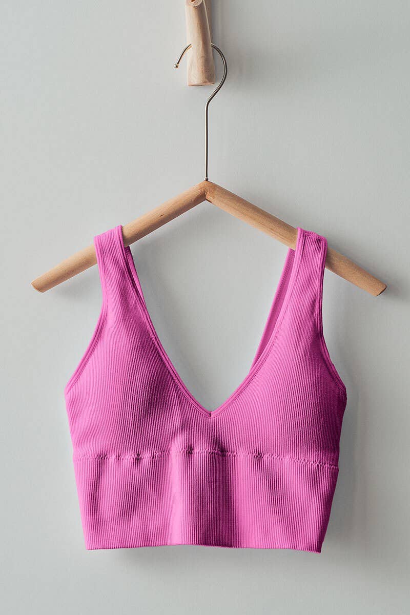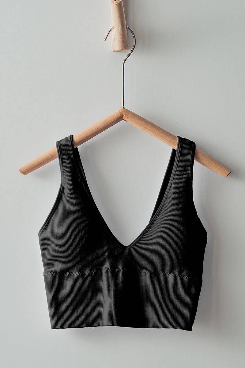 The Kelsie Bralette is your new go-to for effortless style and comfort. This mineral-washed beauty features a flattering V-neckline and sturdy straps that actually stay put. The seamless rib knit hugs you just right, while removable padding lets you dial in your own level of support—wear it however feels best. Whether you're running errands, hitting the gym, or just vibing in your favorite oversized tee, this versatile bralette delivers both confidence and ease.