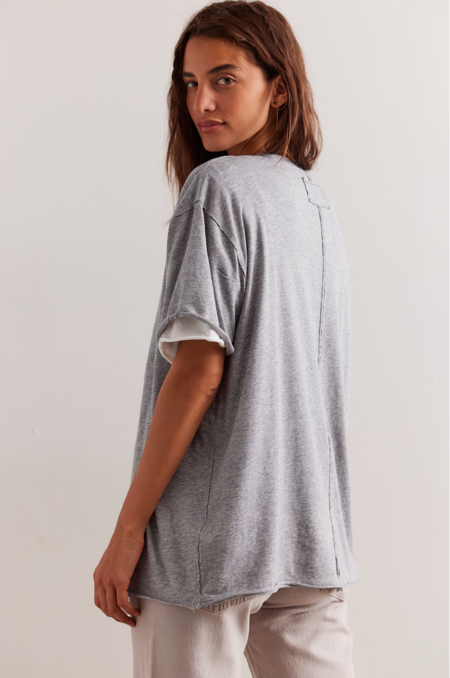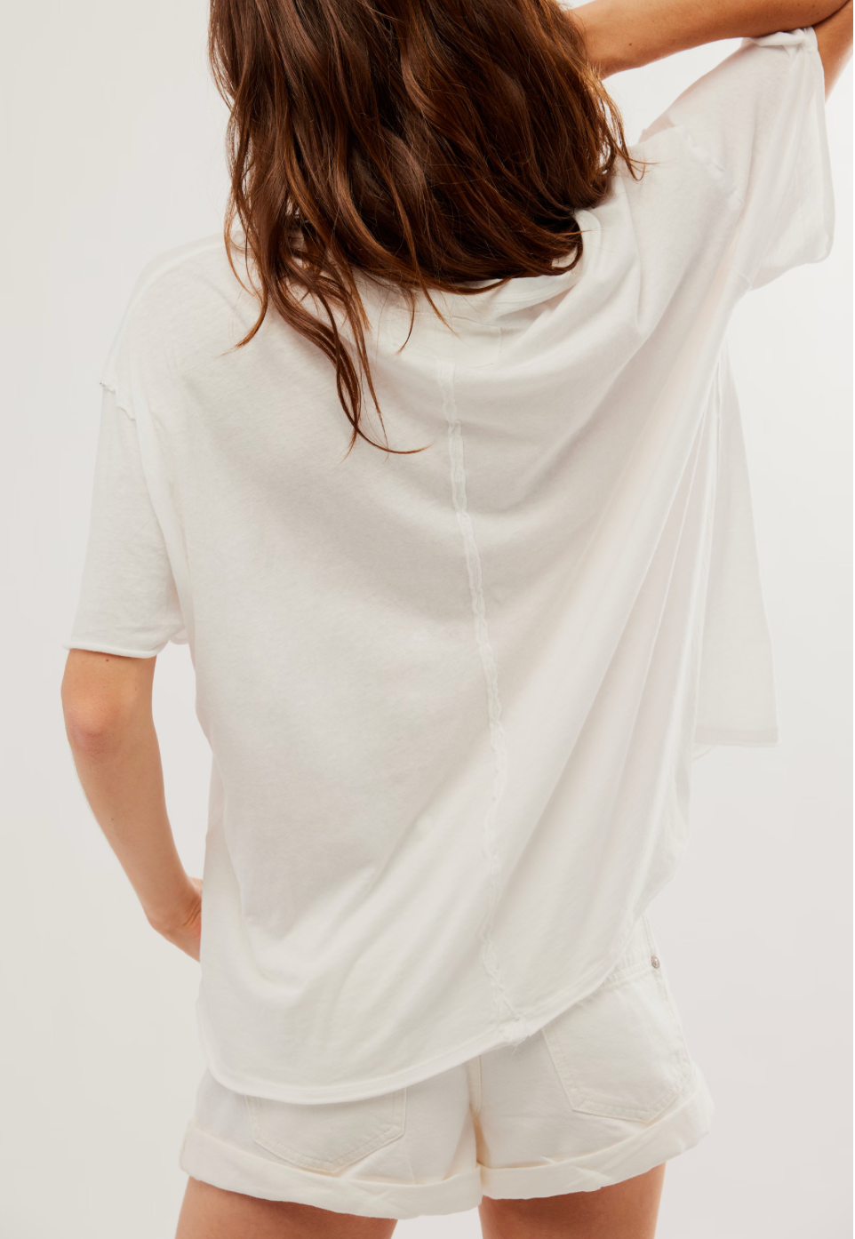 Introducing the Nina Tee by Free People - the perfect combination of comfort and style. With its seam detail in the back, short sleeves, and relaxed fit, this tee is both soft and flattering. Upgrade your wardrobe with this medium length tee that will have you feeling and looking amazing!