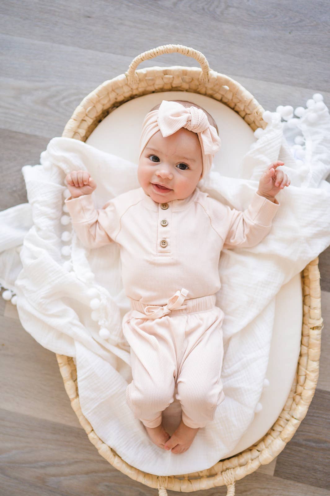 Keep your little one comfy all day with our buttery soft blush ribbed jogger pants. Mix and match with our ribbed shirt. Certified with Standard 100 by OEKO-TEX so you don’t have to worry about harmful substances.