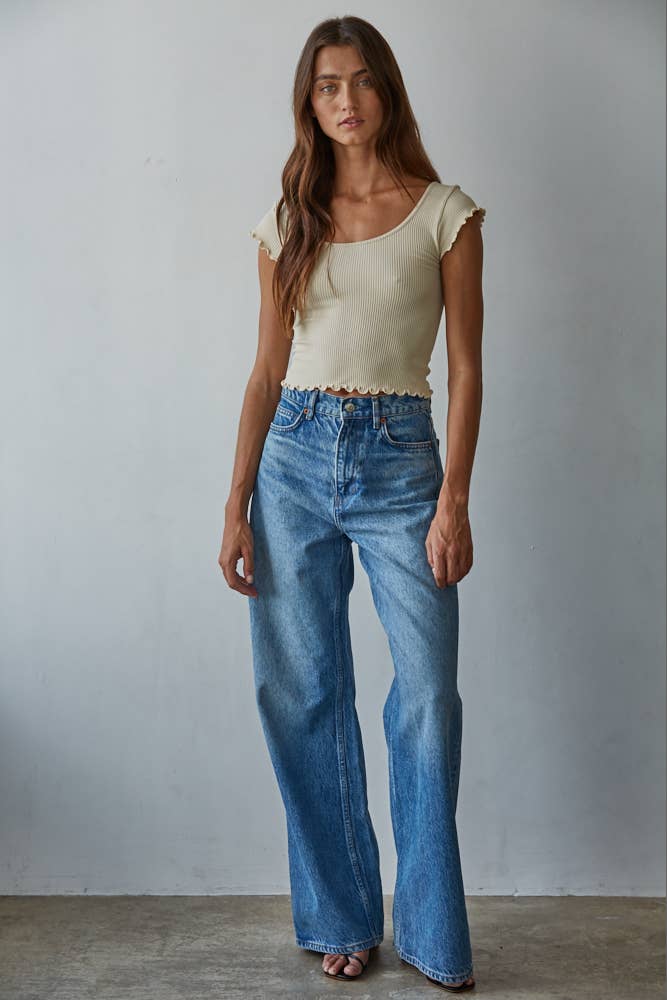 Introducing the Tasha Knit Seamless Top—your new go-to for effortless style! This playful crop features a buttery-soft knit blend of nylon and spandex that moves with you all day long. The ribbed construction keeps its shape, while the signature merrow detailing adds a touch of polish. Scoop neckline, short sleeves, and that adorable lettuce hem finish it off with just the right amount of flirty charm. Perfect for layering or showing off on its own!