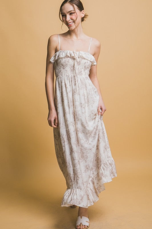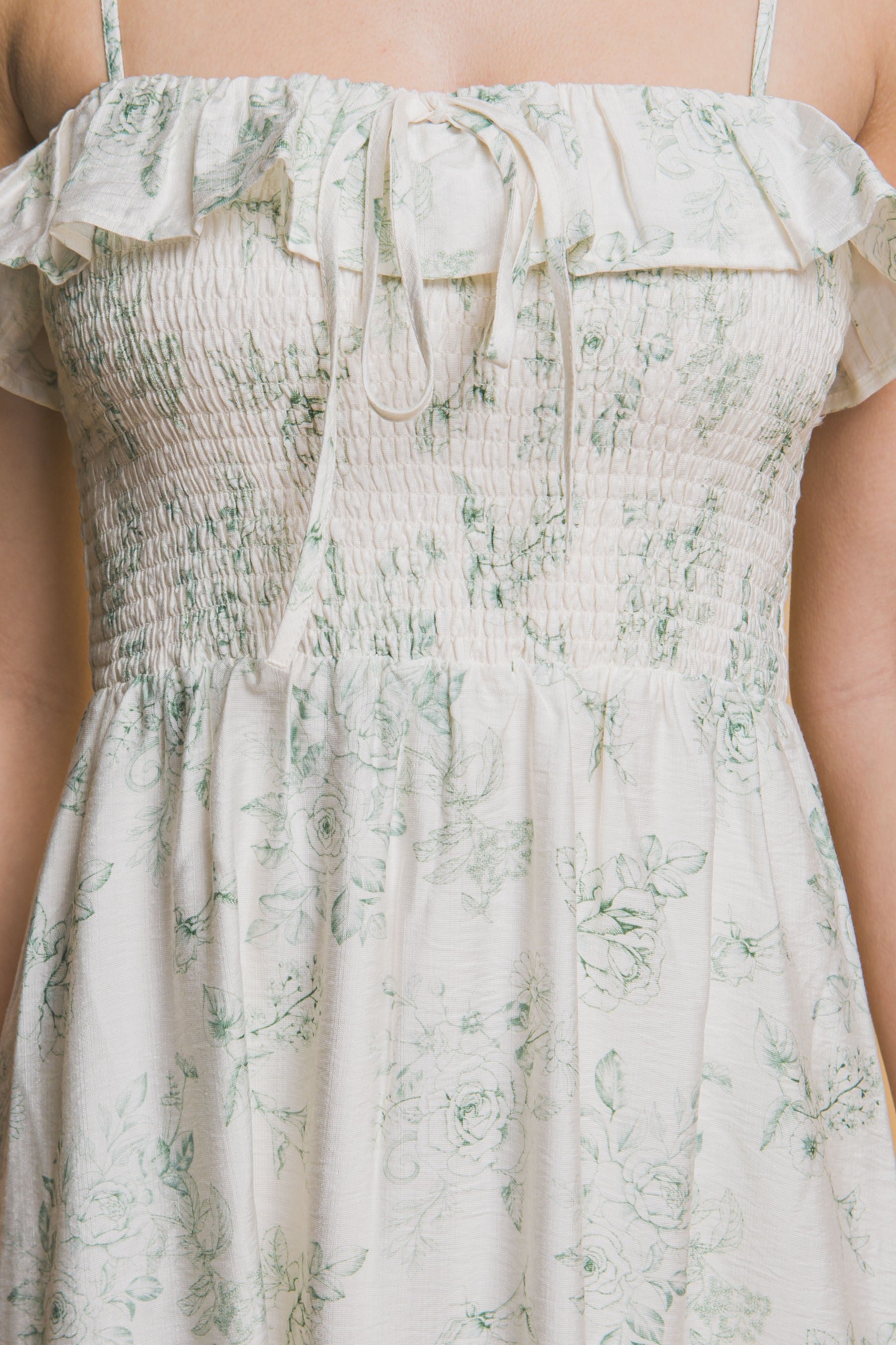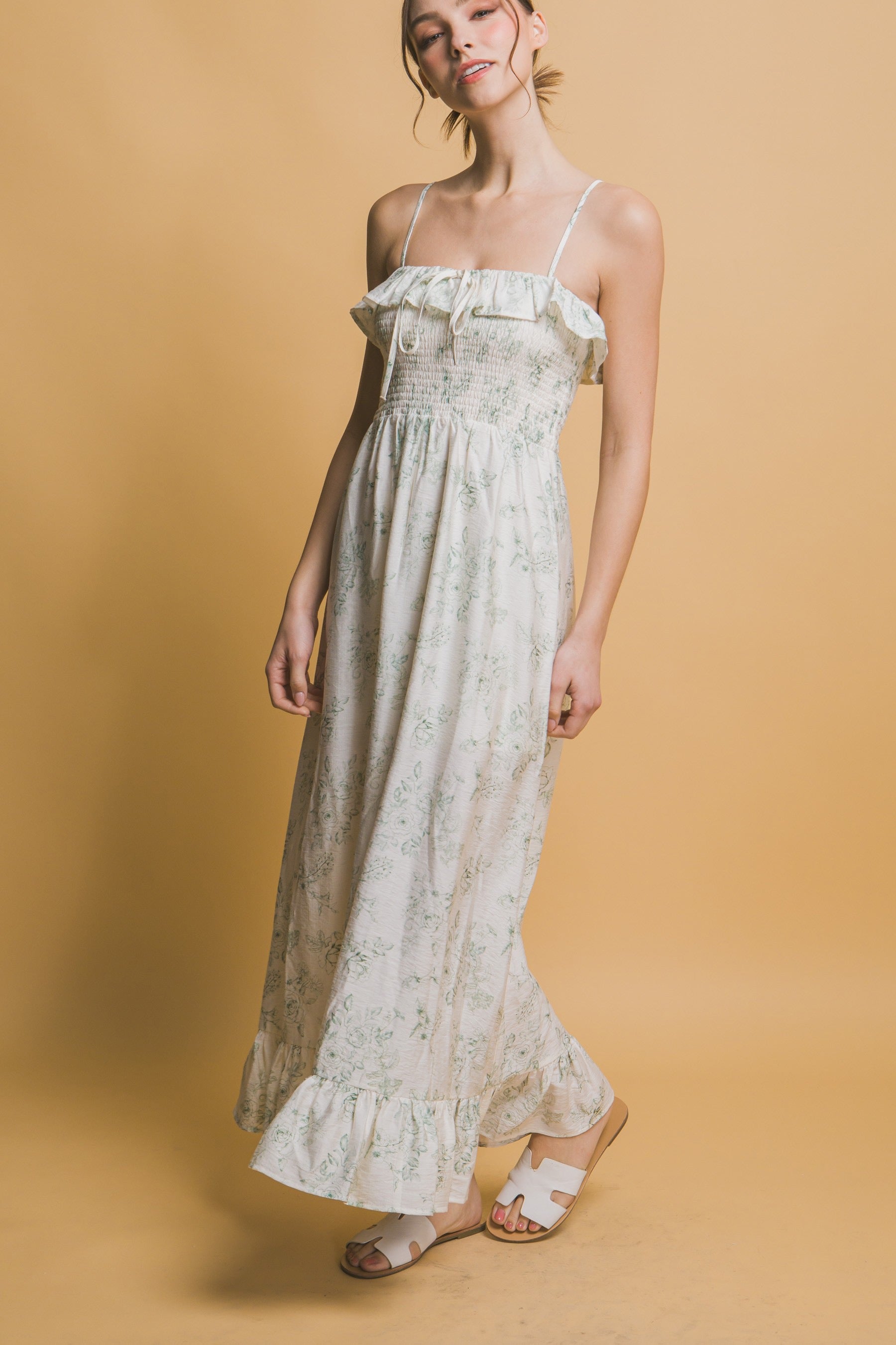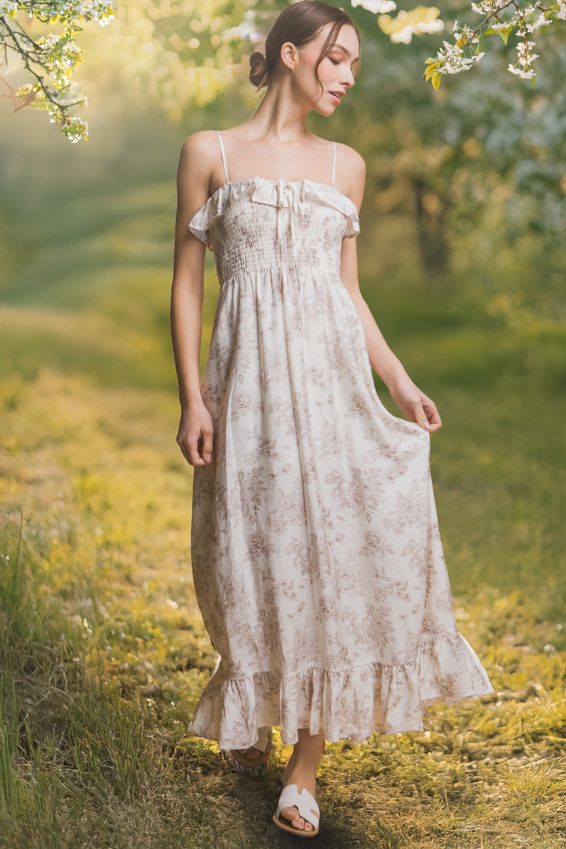 Get ready to be the center of attention in this stunning Smocked Floral Dress! With a ruched front and self tie, this dress perfectly accentuates your figure. The delicate floral design adds a touch of romance, while the flowy silhouette creates a graceful and ethereal look. Perfect for any occasion, so don't hesitate to add this dress to your wardrobe!